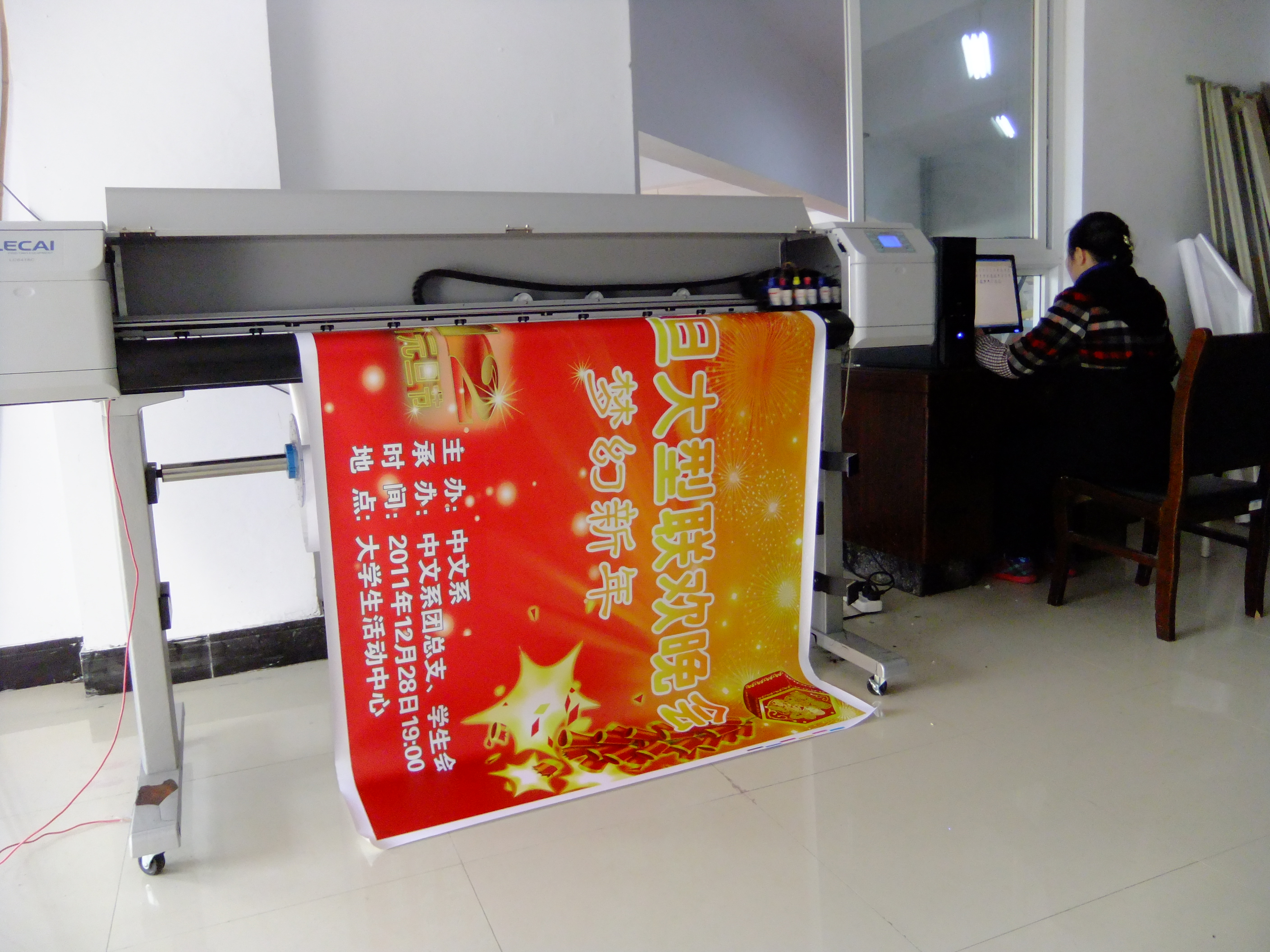 文印中心工作人员认真摸索掌握了写真设计技巧和写真机的使用,制作出来的写真不逊色于专业文印部的制作。本年度,文印中心为学院各项活动制作写真500余平方米
