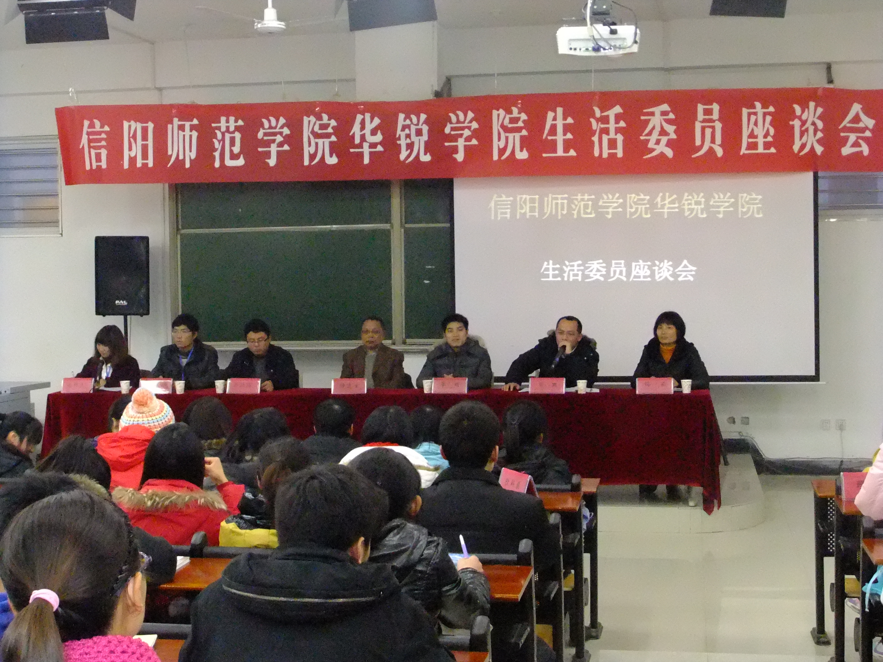 2011年12月6日晚,我院后勤部伙食管理委员会于图书馆101室召开全院生活委员座谈会。理工系系主任钟迪生教授、团委书记学工部副部长李明老师、后勤部部长助理梅云老师、伙委会指导老师万圆圆,餐厅负责人章辉经理及全院160余名生活委员参加了本次会议。大会由伙委会副会长袁琳主持。