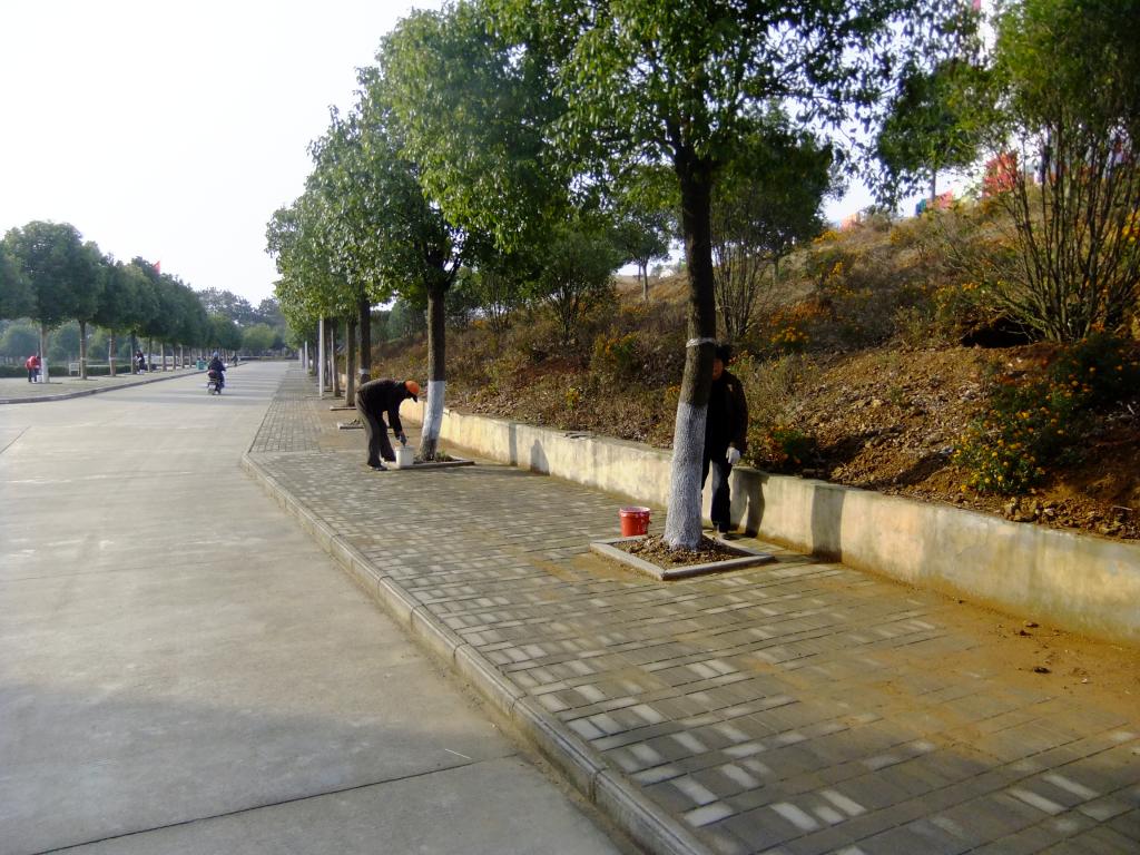 历经十天,花工将已经交归学校的香樟树及桂花树统一刷上白石灰防冻。