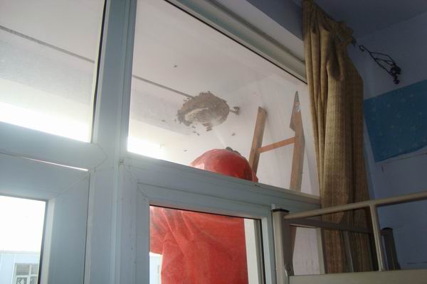 二号宿舍楼和图书馆各有一个大的胡蜂窝,这两个蜂窝位置高,并且胡蜂毒性非常大,一直未能处理。
