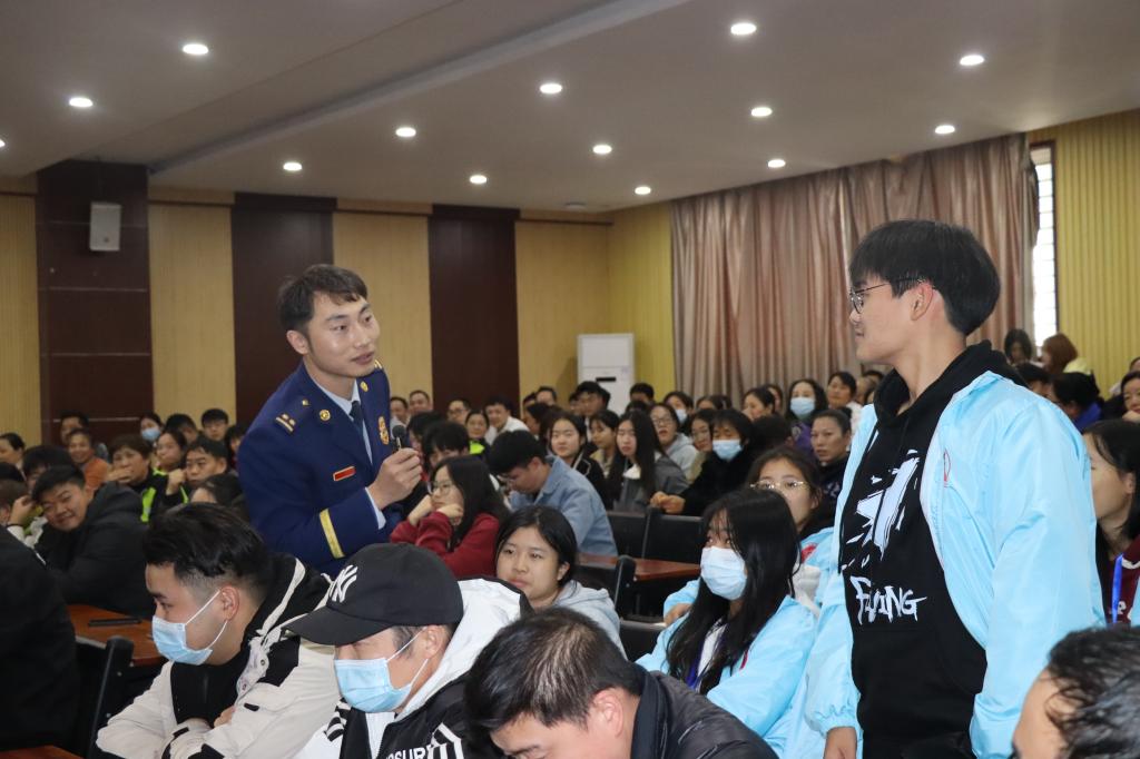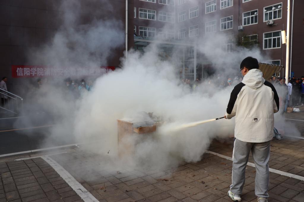 信阳市消防救援支队防火参谋刘琦通过播放火灾警示片、与师生进行互动问答及分析典型的高校火灾案例,详细地向大家介绍了宿舍火灾发生的特点及危害、消防设施器材使用方法、常用灭火方法及注意事项、火场逃生技巧等消防知识及技能。