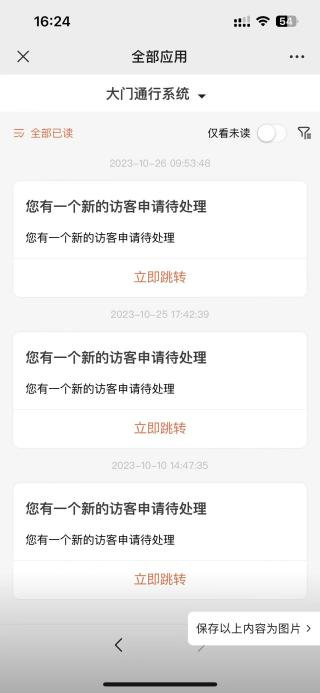 5. 登录成功后点击“消息→大门通行系统→立即跳转”,选择审批
