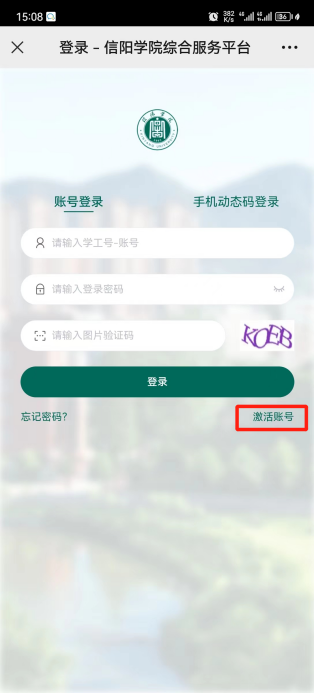 4. 点击“服务平台→公众号/小程序→激活账号”进行账号激活并绑定
